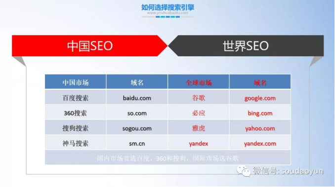 如果你的目标客户在中国,百度搜索引擎,百度占中国搜索引擎70%左至份额,如果你的客户在国际市场,谷歌(好le)搜索引擎。谷歌占全球市场95%。